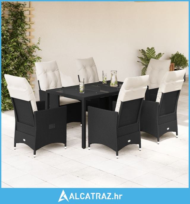 7-dijelni vrtni blagovaonski set s jastucima crni od poliratana - NOVO