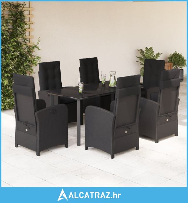 7-dijelni vrtni blagovaonski set s jastucima crni od poliratana - NOVO