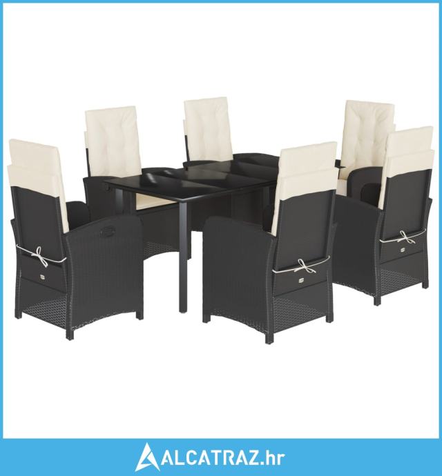 7-dijelni vrtni blagovaonski set s jastucima crni od poliratana - NOVO