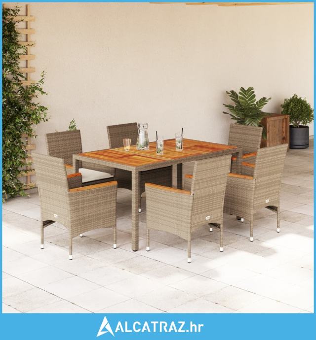7-dijelni vrtni blagovaonski set s jastucima poliratan i bagrem - NOVO
