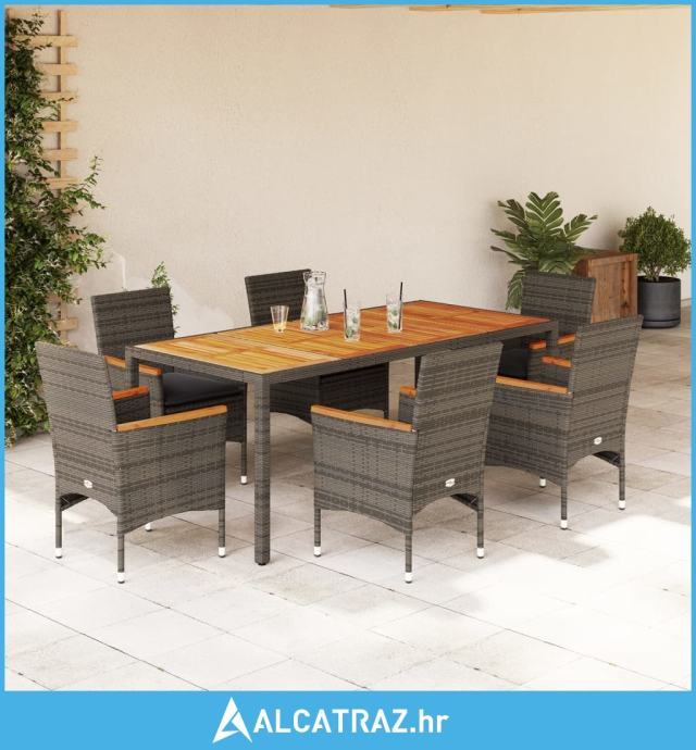 7-dijelni vrtni blagovaonski set s jastucima poliratan i bagrem - NOVO
