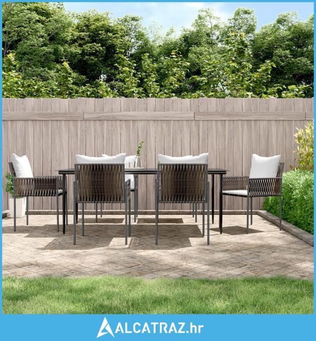 7-dijelni vrtni blagovaonski set s jastucima poliratan i čelik - NOVO