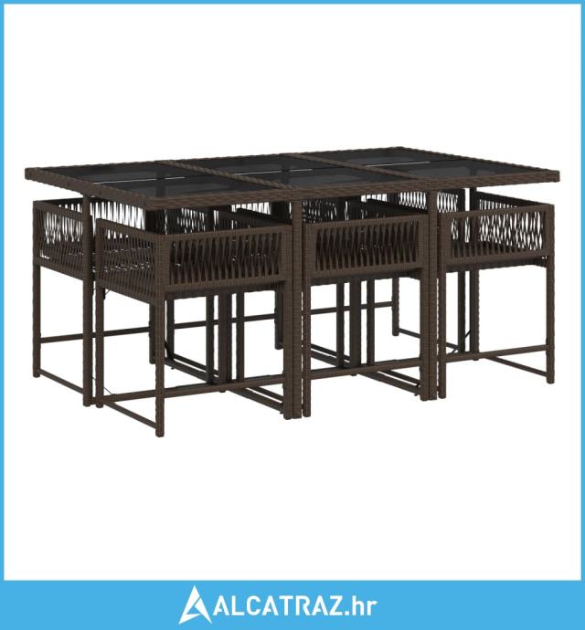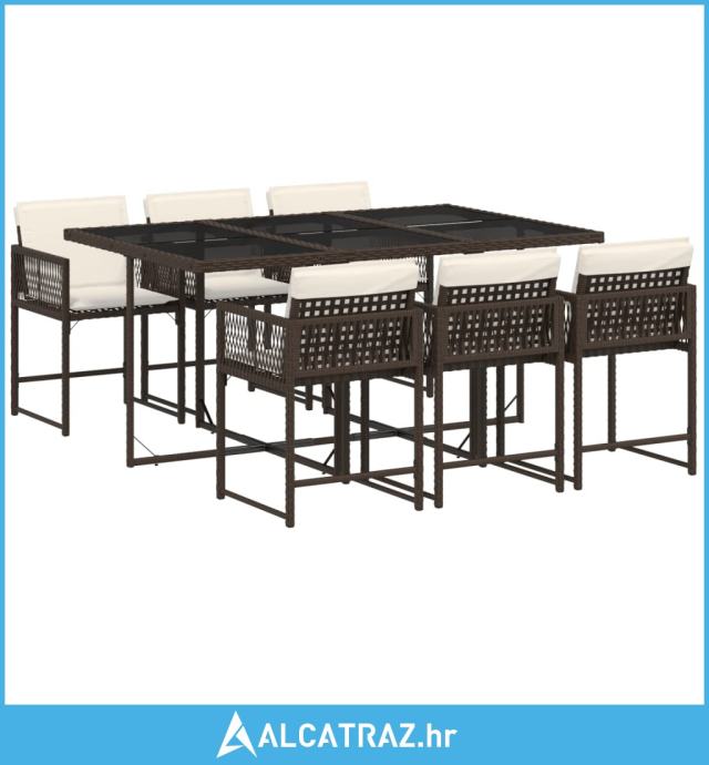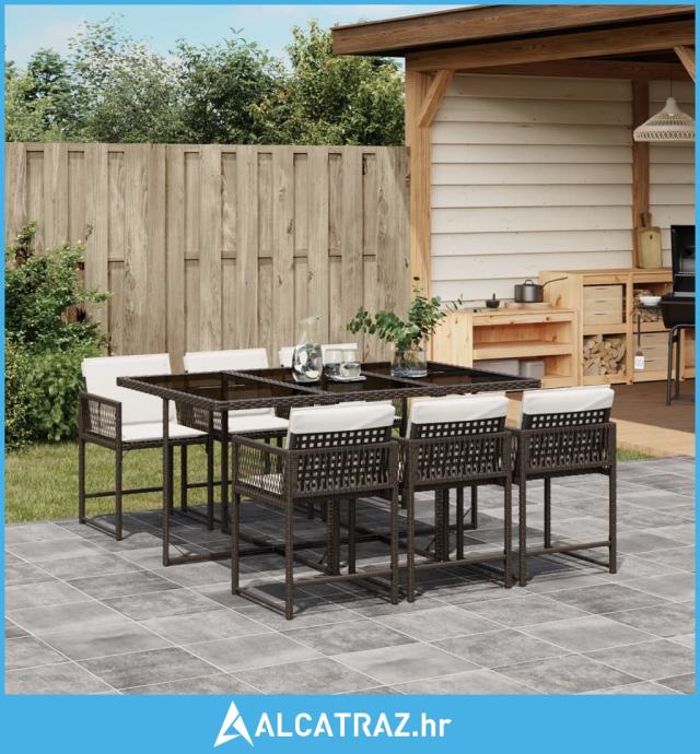 7-dijelni vrtni blagovaonski set s jastucima poliratan smeđi - NOVO
