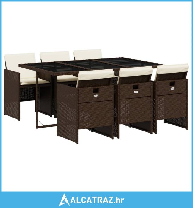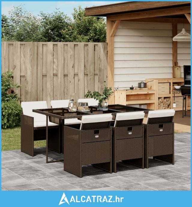 7-dijelni vrtni blagovaonski set s jastucima poliratan smeđi - NOVO