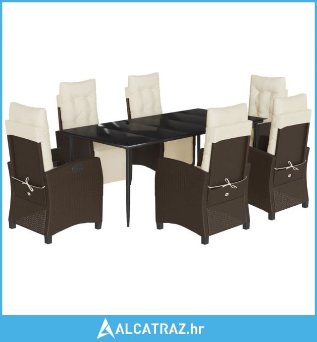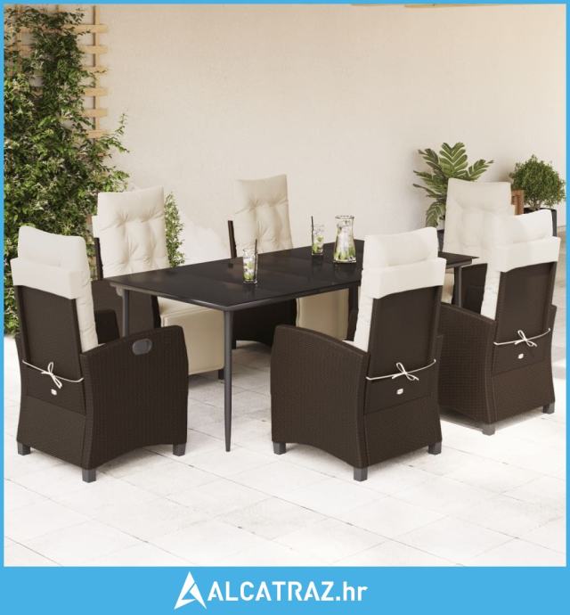 7-dijelni vrtni blagovaonski set s jastucima poliratan smeđi - NOVO