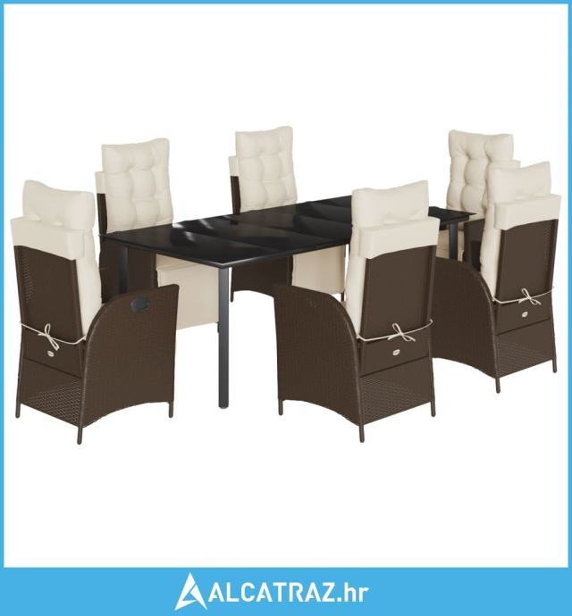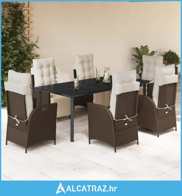 7-dijelni vrtni blagovaonski set s jastucima poliratan smeđi - NOVO