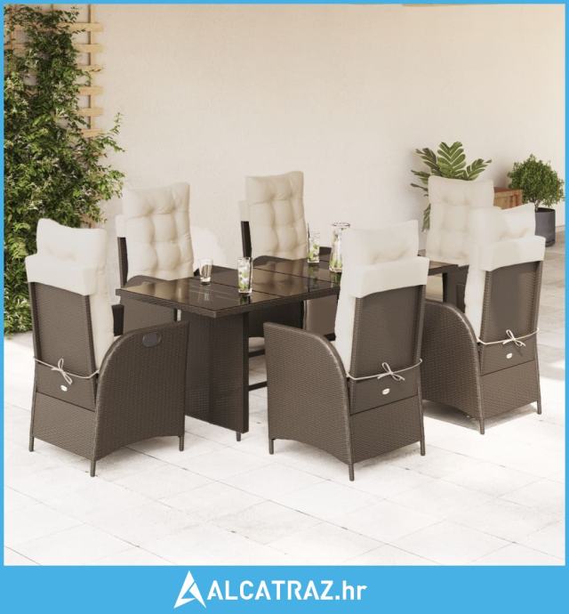 7-dijelni vrtni blagovaonski set s jastucima poliratan smeđi - NOVO