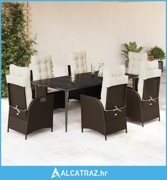 7-dijelni vrtni blagovaonski set s jastucima poliratan smeđi - NOVO