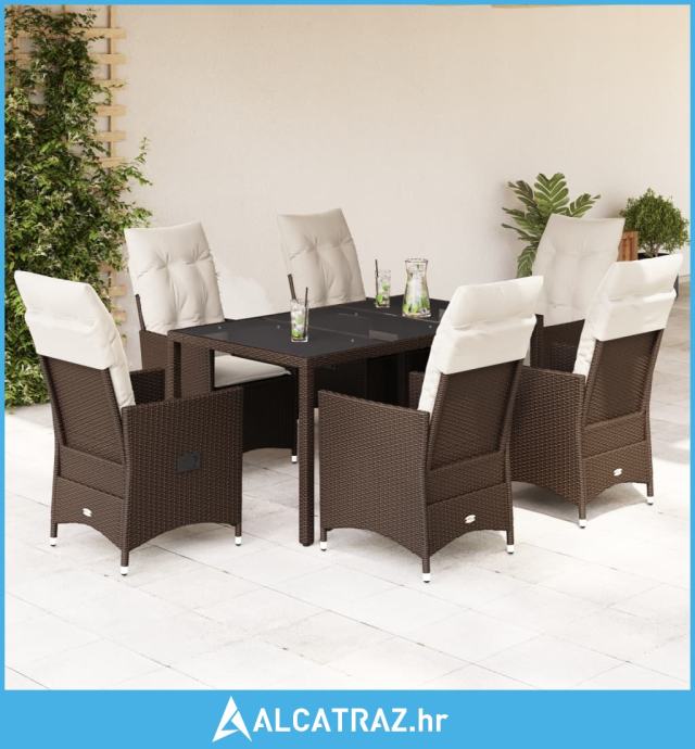 7-dijelni vrtni blagovaonski set s jastucima poliratan smeđi - NOVO