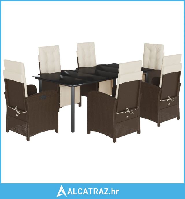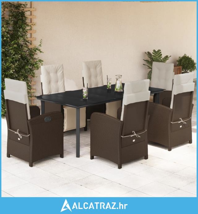 7-dijelni vrtni blagovaonski set s jastucima poliratan smeđi - NOVO