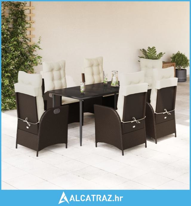 7-dijelni vrtni blagovaonski set s jastucima poliratan smeđi - NOVO