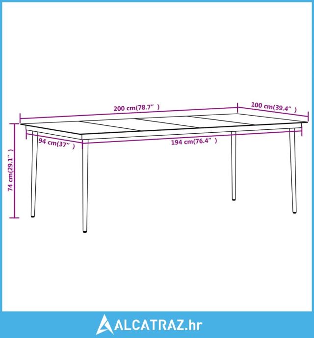 - Dimenzije stola: 200 x 100 x 74 cm (D x Š x V)
