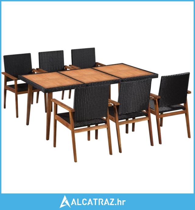7-dijelni vrtni blagovaonski set od poliratana crno smeđi - NOVO
