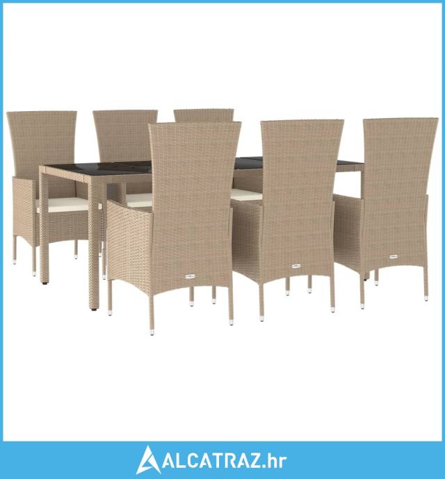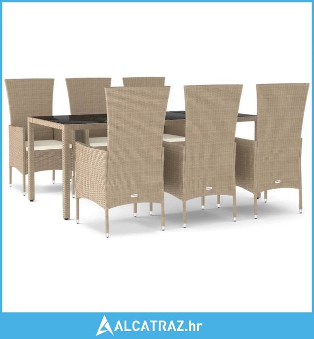 7-dijelni vrtni blagovaonski set od poliratana s jastucima bež - NOVO