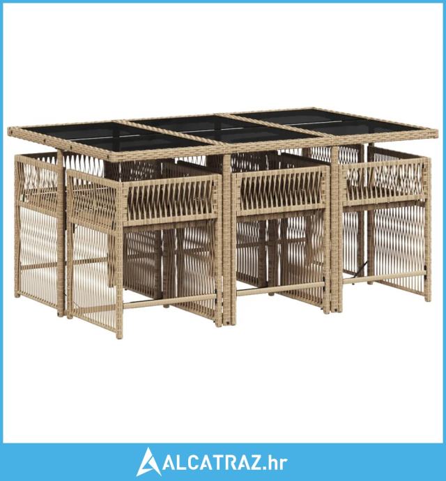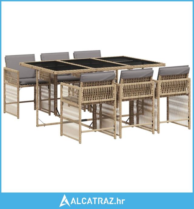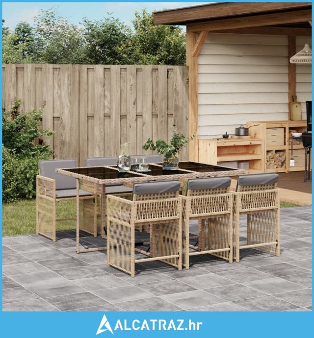 7-dijelni vrtni blagovaonski set od poliratana s jastucima bež - NOVO