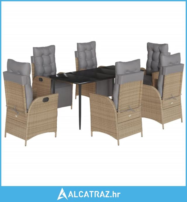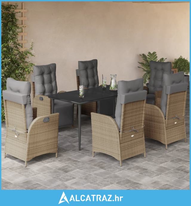 7-dijelni vrtni blagovaonski set od poliratana s jastucima bež - NOVO