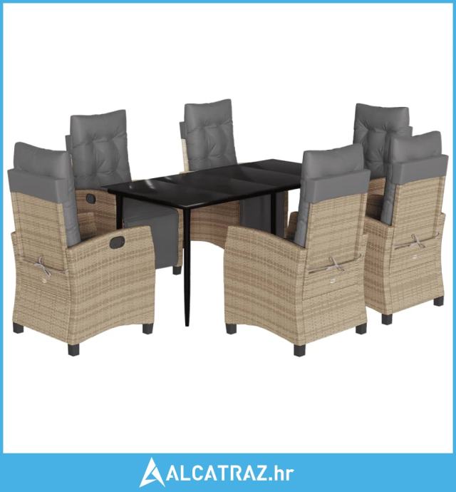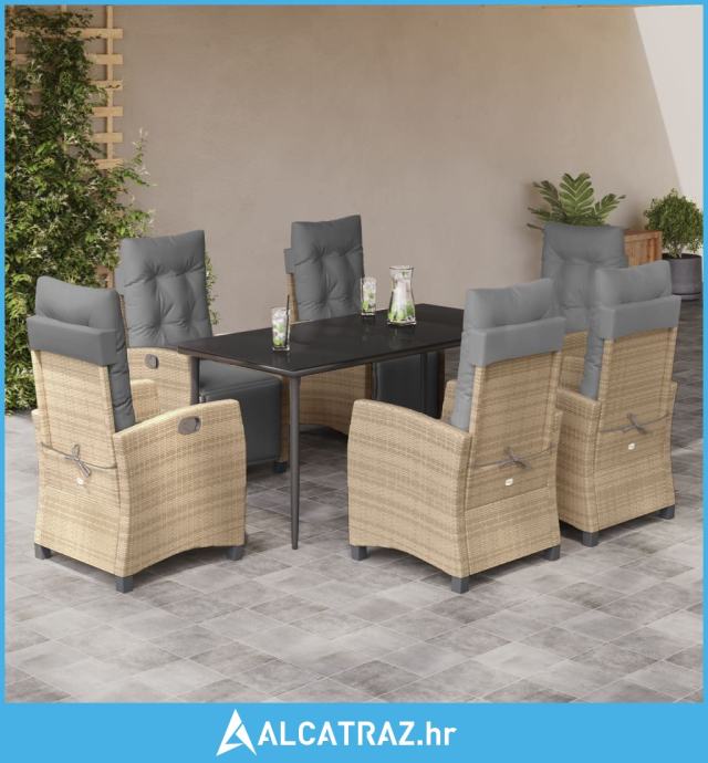 7-dijelni vrtni blagovaonski set od poliratana s jastucima bež - NOVO