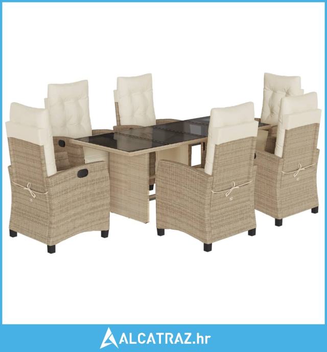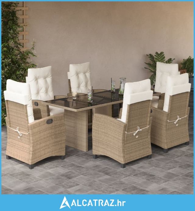 7-dijelni vrtni blagovaonski set od poliratana s jastucima bež - NOVO