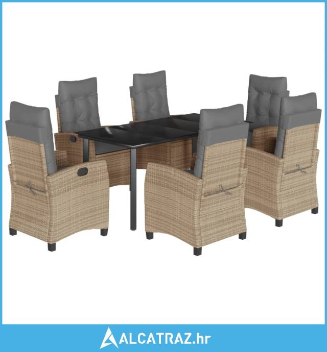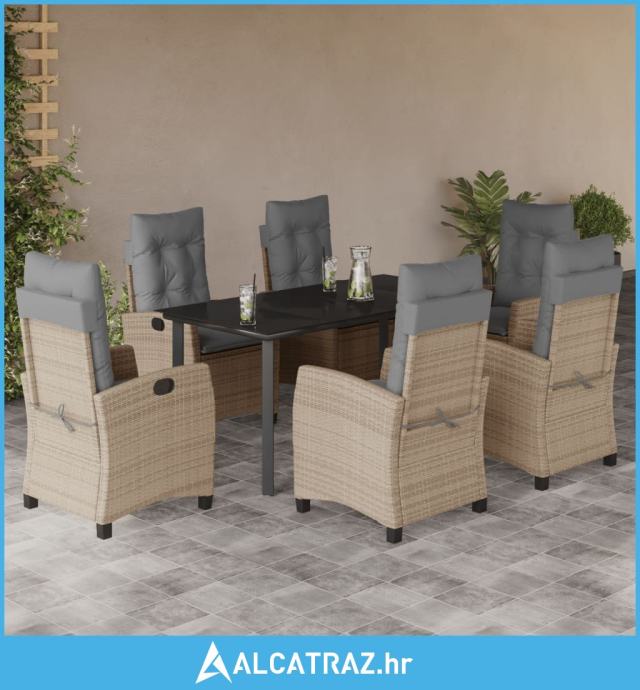 7-dijelni vrtni blagovaonski set od poliratana s jastucima bež - NOVO