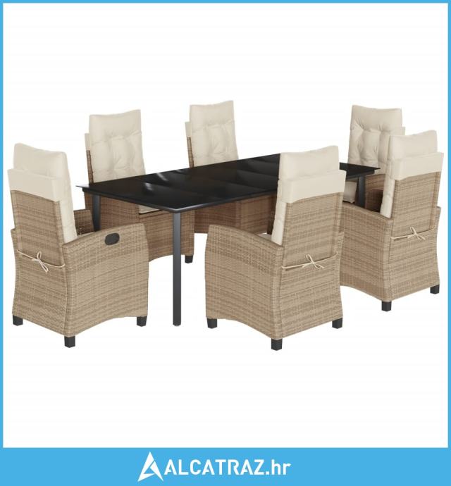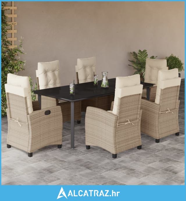 7-dijelni vrtni blagovaonski set od poliratana s jastucima bež - NOVO