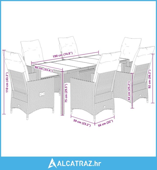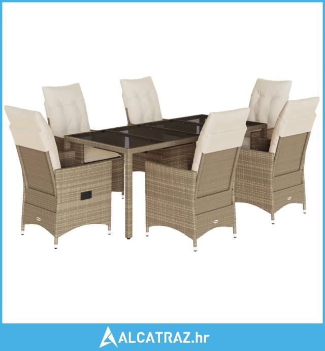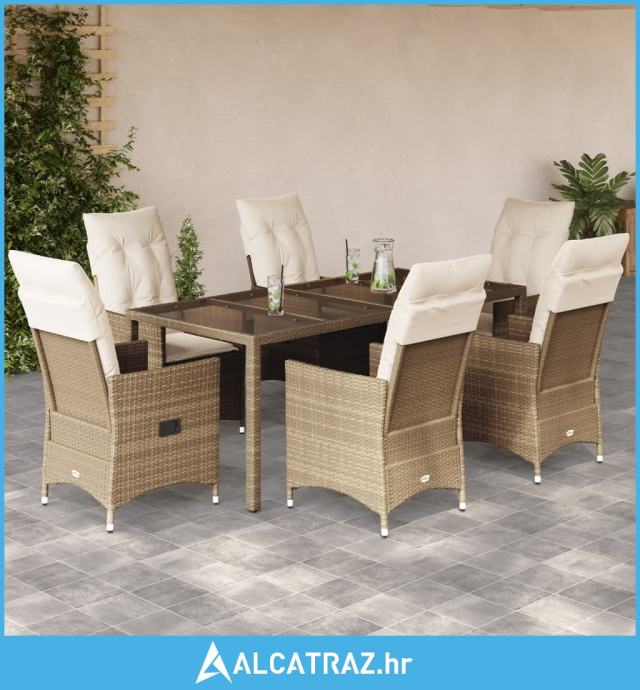 7-dijelni vrtni blagovaonski set od poliratana s jastucima bež - NOVO