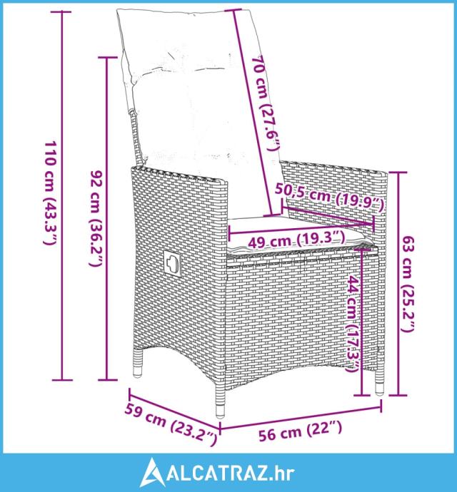 - Dimenzije u sjedećem položaju: 56 x 59 x 92 cm (Š x D x V)