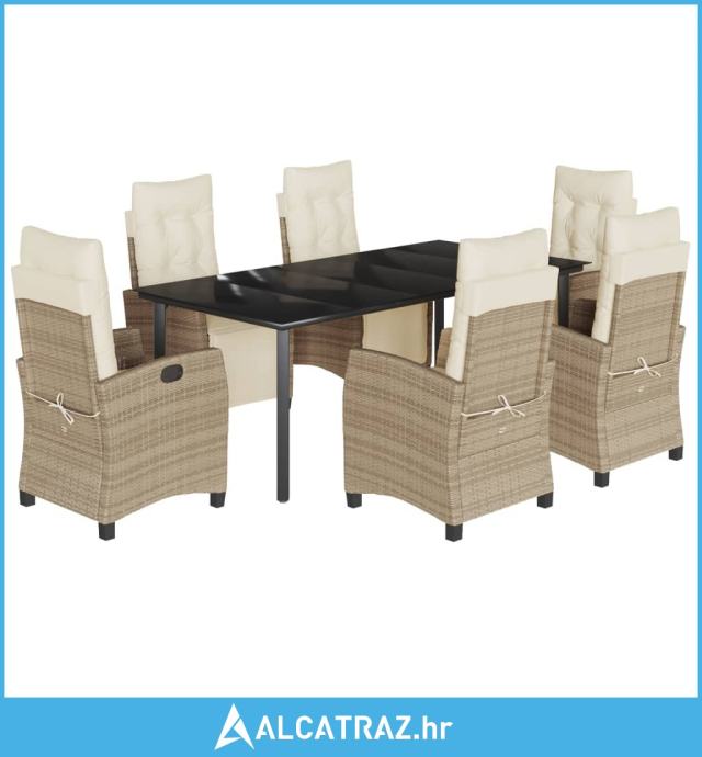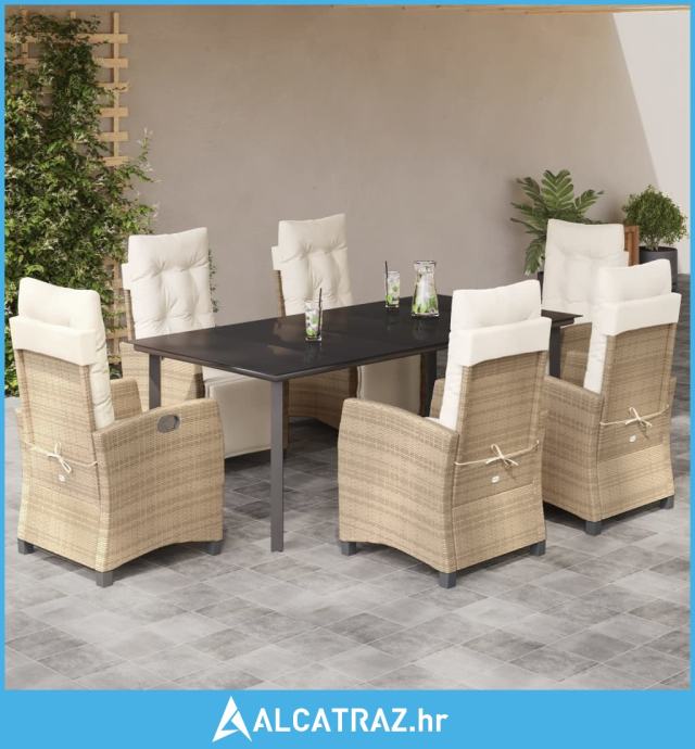 7-dijelni vrtni blagovaonski set od poliratana s jastucima bež - NOVO