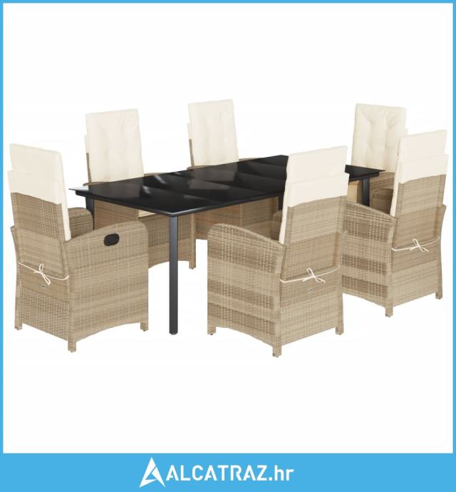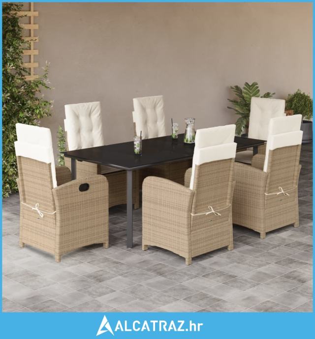 7-dijelni vrtni blagovaonski set od poliratana s jastucima bež - NOVO