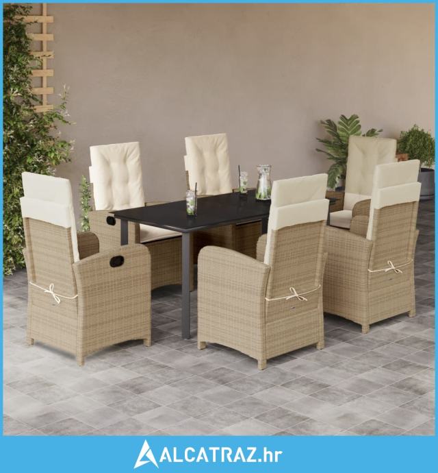 7-dijelni vrtni blagovaonski set od poliratana s jastucima bež - NOVO