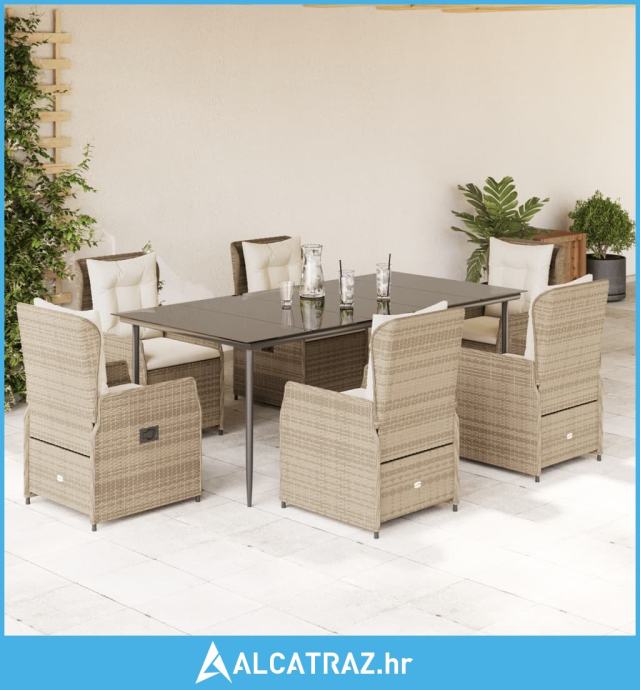 7-dijelni vrtni blagovaonski set od poliratana s jastucima bež - NOVO