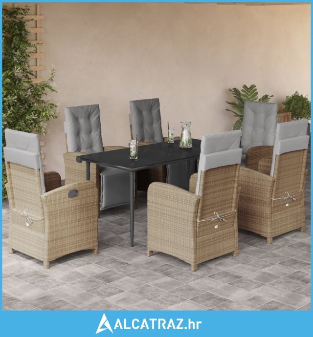 7-dijelni vrtni blagovaonski set od poliratana s jastucima bež - NOVO