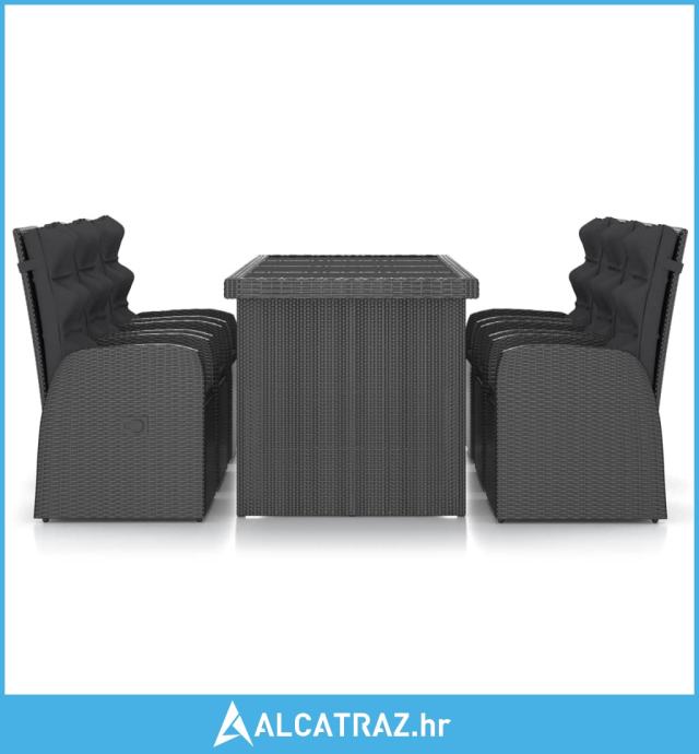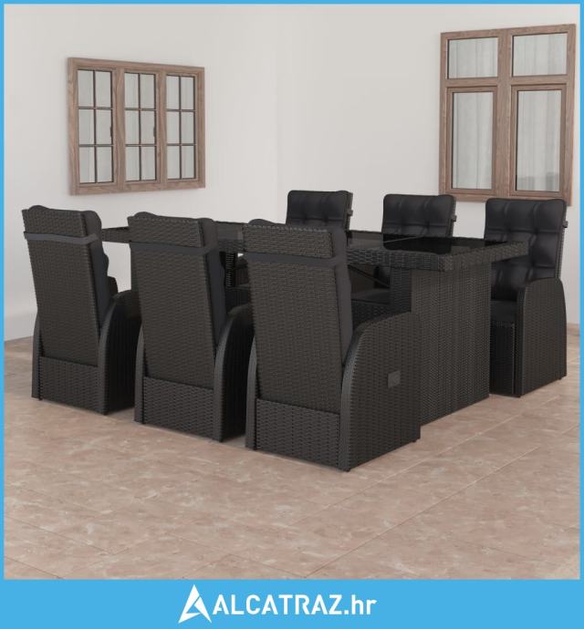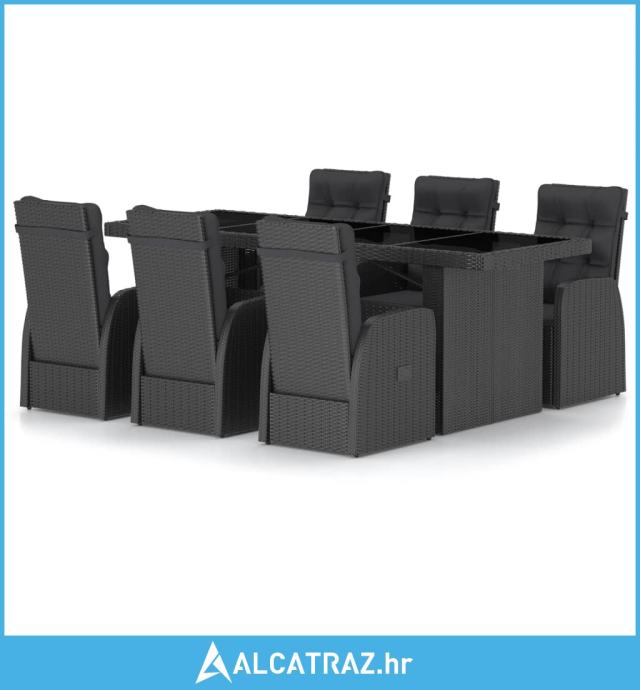 7-dijelni vrtni blagovaonski set od poliratana s jastucima crni - NOVO