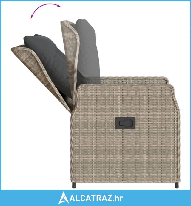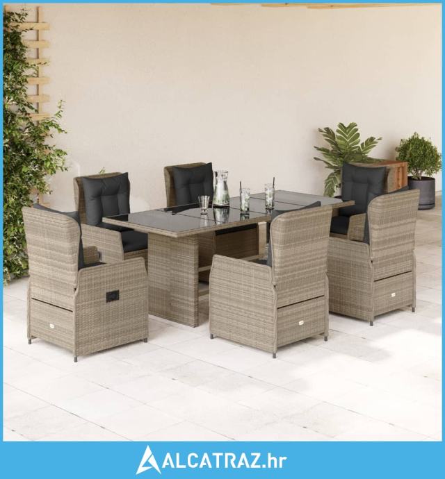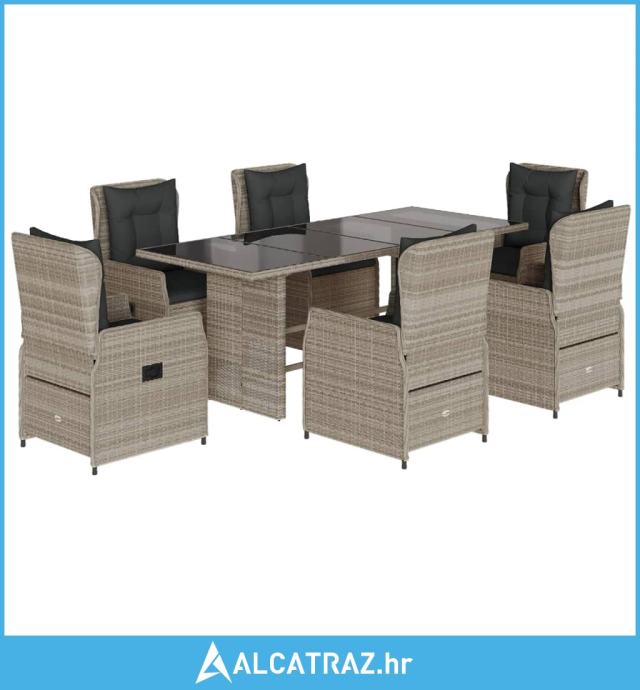 7-dijelni vrtni blagovaonski set od poliratana s jastucima sivi - NOVO