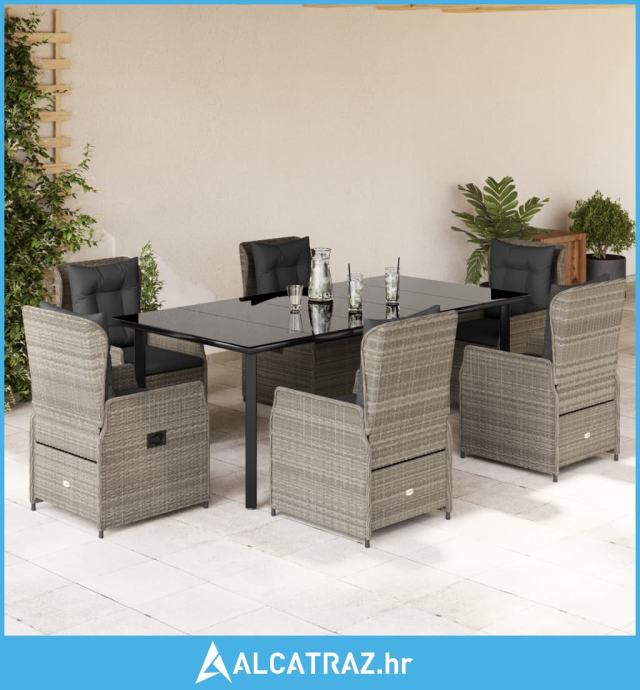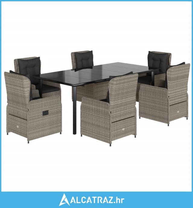 7-dijelni vrtni blagovaonski set od poliratana s jastucima sivi - NOVO