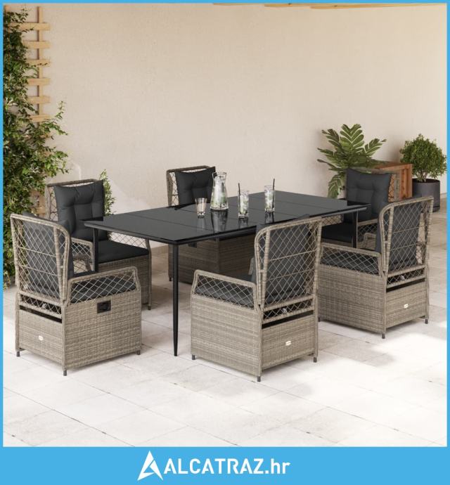7-dijelni vrtni blagovaonski set od poliratana s jastucima sivi - NOVO