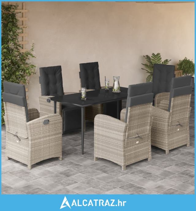 7-dijelni vrtni blagovaonski set od poliratana s jastucima sivi - NOVO