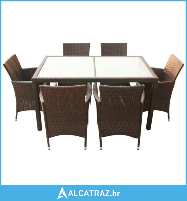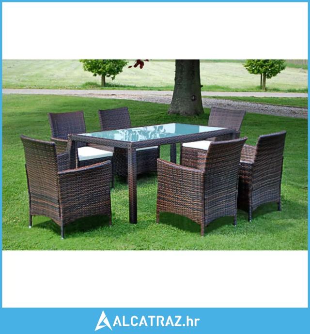 7-dijelni vrtni blagovaonski set od poliratana s jastucima smeđi - NOV