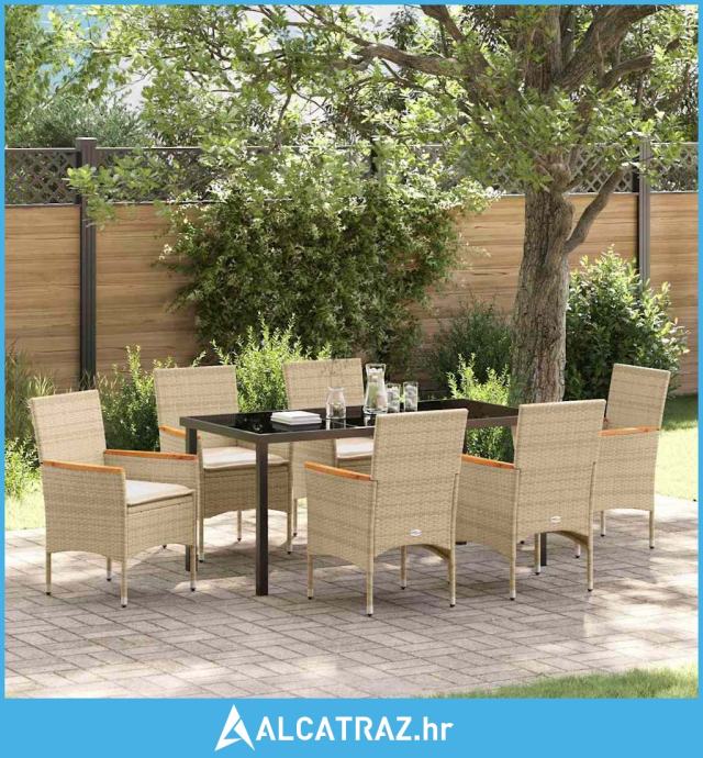 7-dijelni vrtni set za objedovanje s jastučićima bež poli ratan - NOVO