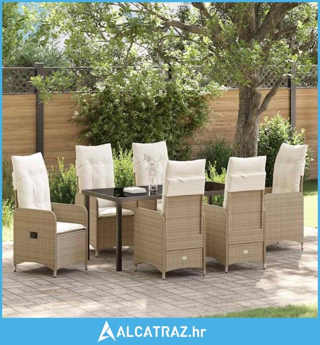 7-dijelni vrtni set za objedovanje s jastučićima bež poli ratan - NOVO
