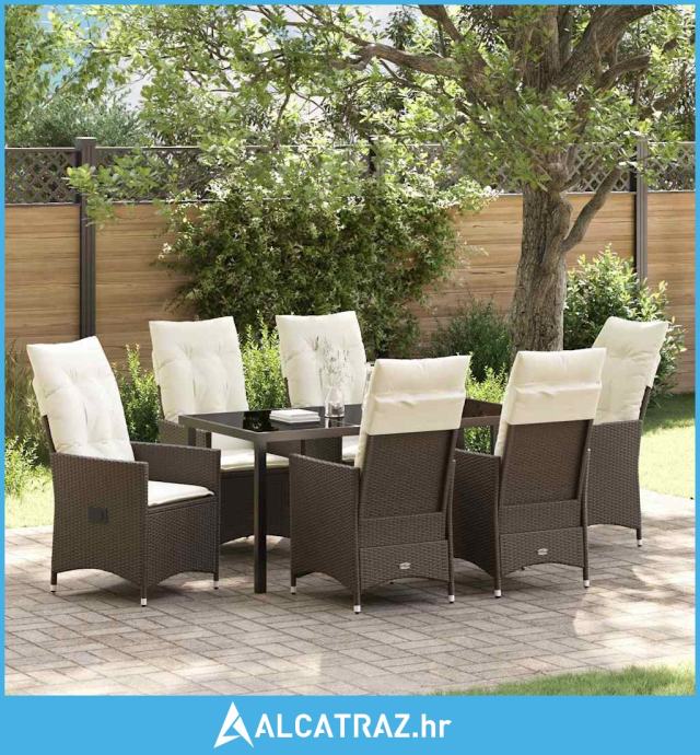 7-dijelni vrtni set za objedovanje s jastučićima smeđa poli ratan - NO