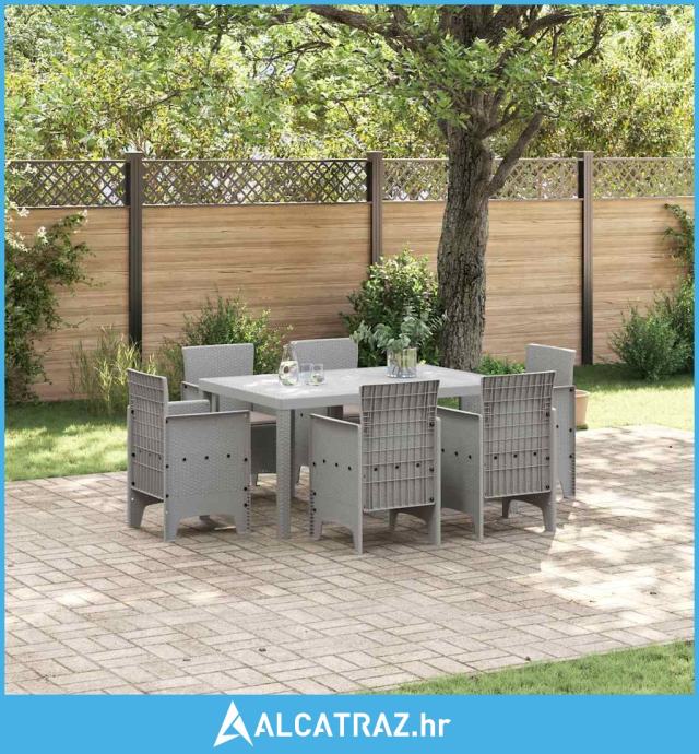 7-dijelni vrtni set za objedovanje s jastučićima svijetlosivi poli rat