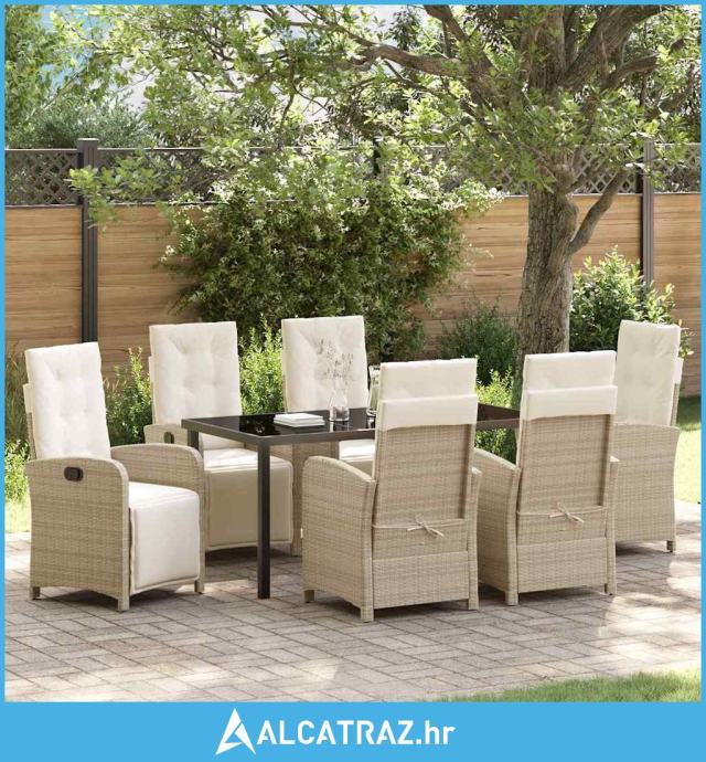 7-dijelni vrtni set za objedovanje s jastucima bež poli ratan, vrtni s