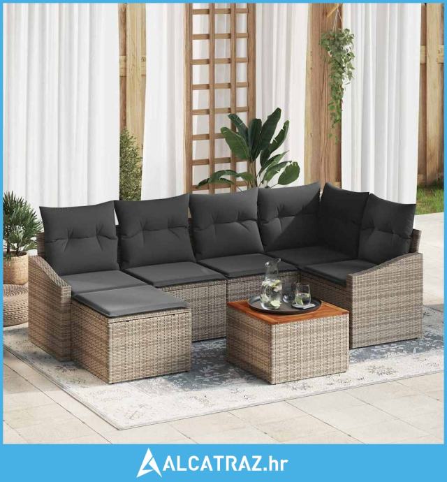 7-dijelni vrtni sofa set s jastučićima sivo poli ratan akacija - NOVO