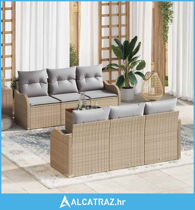 7 komada vrtnog seta sofe s jastučićima bež poli ratan akacija - NOVO