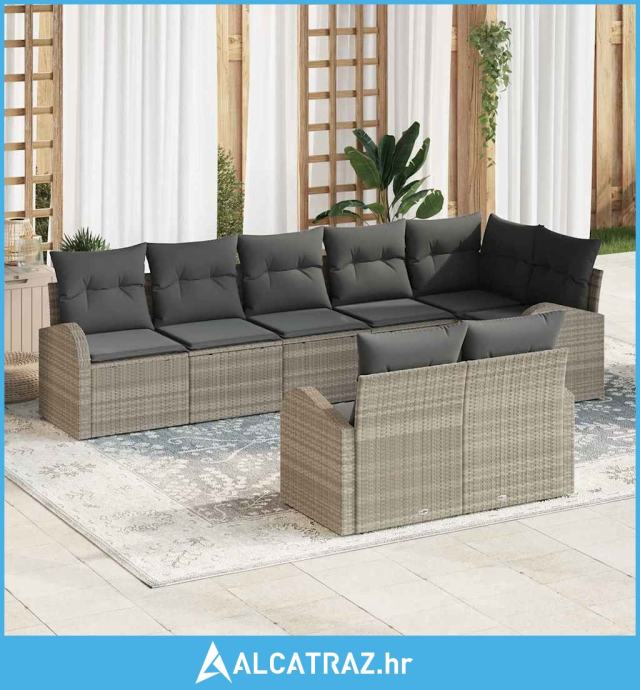 8-dijelna garnitura za vrt s jastucima Svjetlosiva poli ratan - NOVO