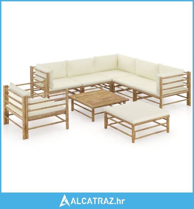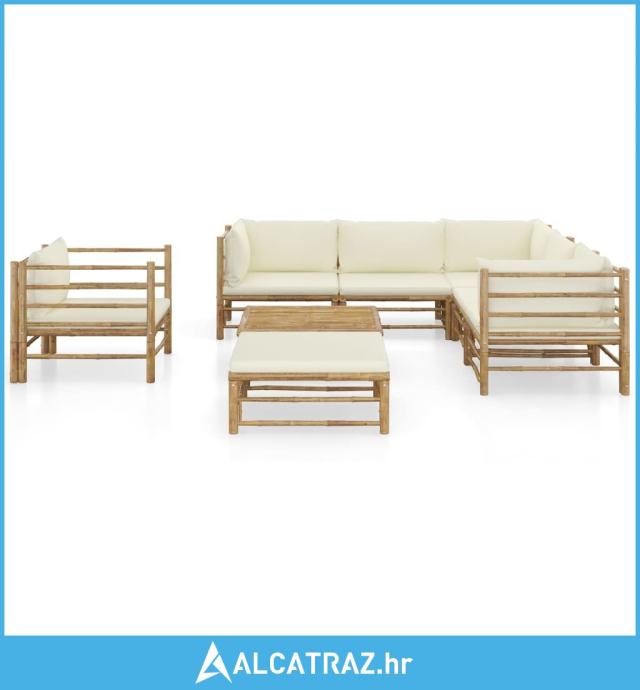 8-dijelna vrtna garnitura od bambusa s krem bijelim jastucima - NOVO