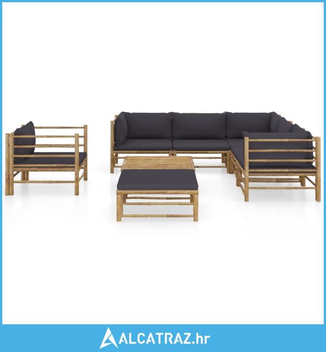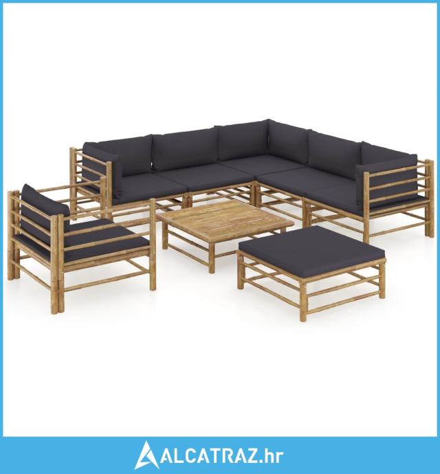 8-dijelna vrtna garnitura od bambusa s tamnosivim jastucima - NOVO