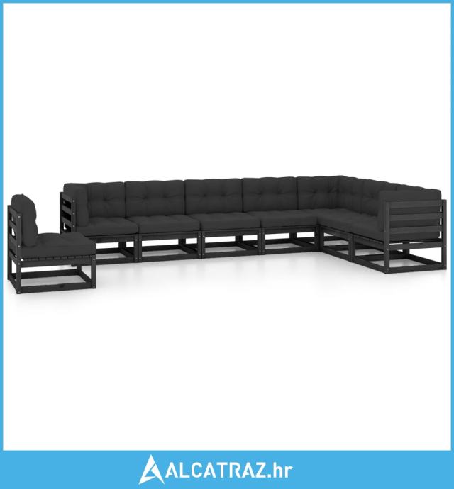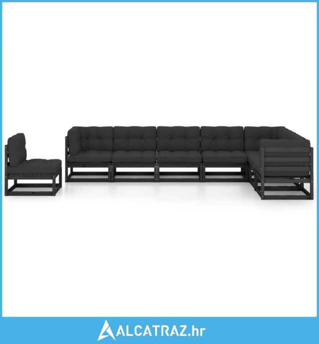 8-dijelna vrtna garnitura s jastucima crna od masivne borovine - NOVO