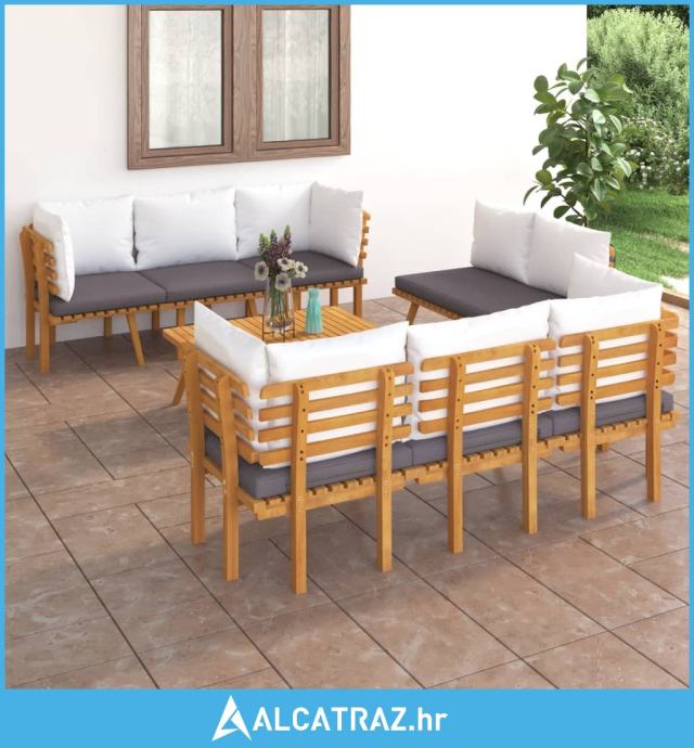 8-dijelna vrtna garnitura s jastucima masivno bagremovo drvo - NOVO