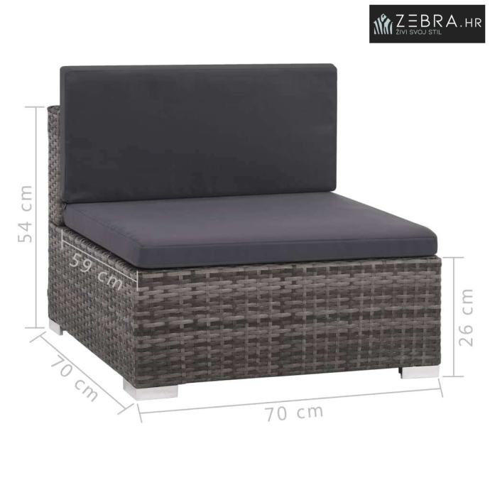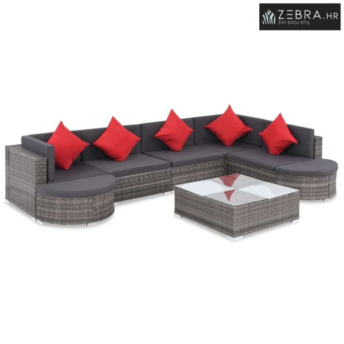 8-dijelna vrtna garnitura od poliratana s jastucima siva - Siva 8